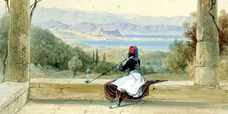 Por, numrin më të madh e përbëjnë tablotë që u krijuan për shqiptarët në trojet helene. Shkrimtari dhe eseisti francez Jacques Lacarrière, një nga njohësit më të mirë të historisë greke, kur shkruan se në tablotë me temë nga Greqia gjenden edhe figura shqiptarësh, që dallohen nga veshjet karakteristike (Tsigakou, F.: La Grèce retrouvée, f. 10, Paris, 1984), ka parasysh jo vetëm pikturat e shumta të artistit gjerman Peter von Hess, por dhe shumë e shumë vepra të tjera nga Thomas Hope, Edward Doduell, Carl Hallerstein, Apollodore Callet, Francesco Hayes, Ludovico Lipparini, Charles Gleyre etj, ku shqiptarët janë gjithnjë të pranishëm.