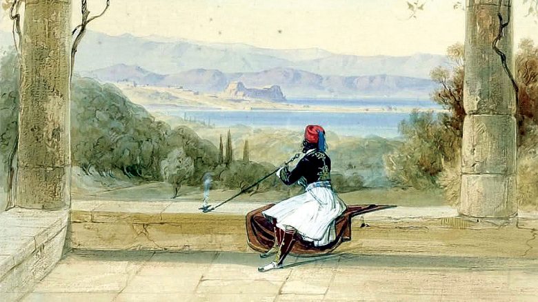 Por, numrin më të madh e përbëjnë tablotë që u krijuan për shqiptarët në trojet helene. Shkrimtari dhe eseisti francez Jacques Lacarrière, një nga njohësit më të mirë të historisë greke, kur shkruan se në tablotë me temë nga Greqia gjenden edhe figura shqiptarësh, që dallohen nga veshjet karakteristike (Tsigakou, F.: La Grèce retrouvée, f. 10, Paris, 1984), ka parasysh jo vetëm pikturat e shumta të artistit gjerman Peter von Hess, por dhe shumë e shumë vepra të tjera nga Thomas Hope, Edward Doduell, Carl Hallerstein, Apollodore Callet, Francesco Hayes, Ludovico Lipparini, Charles Gleyre etj, ku shqiptarët janë gjithnjë të pranishëm.