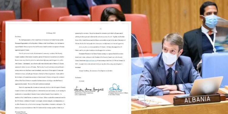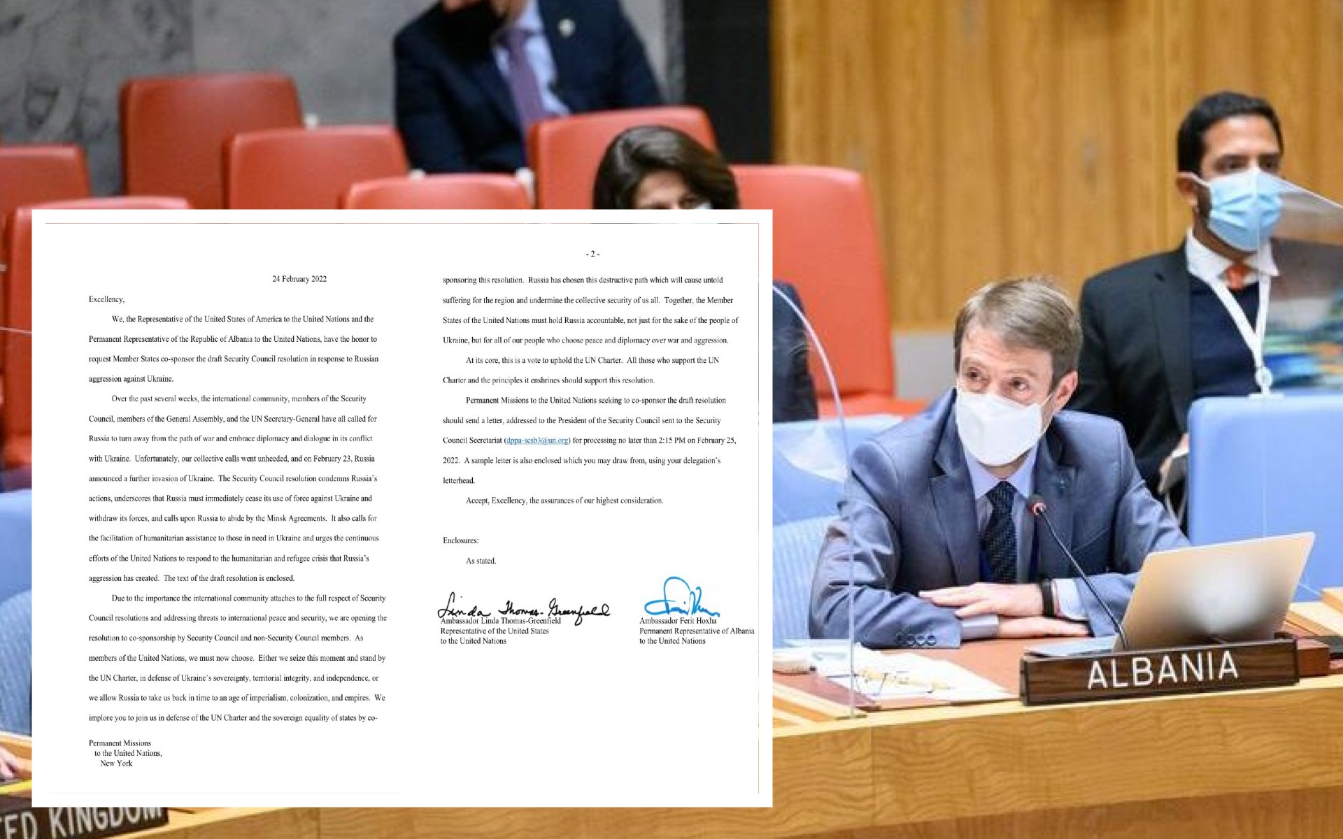 “Si pjesëtarë të Kombeve të Bashkuara, duhet të zgjedhim”, shtrohet çështja në të. “Ose do t’i qëndrojmë Kartës së OKB-së, në mbrojtje të sovranitetit të Ukrainës, integritetit territorial të saj dhe pavarësisë, ose do t’i lejojmë Rusisë të na çojë pas në kohë, në epokën e imperializmit, kolonizimit dhe perandorive”.