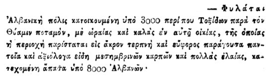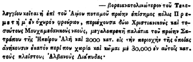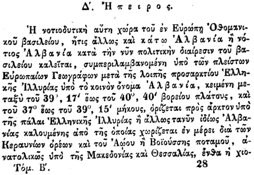 Kjo renditje tregon se për gjeografinë greke të vitit 1838, Kosova (Prishtina) dhe Shkupi (Ohri) ishin pjesë organike dhe të padiskutueshme të Shqipërisë.