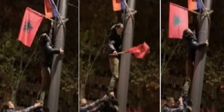 Një grup të rinjsh në Beograd kishin vendosur që të largonin flamujt shqiptarë të vendosur në Beograd, për shkak të një samiti të ndodhur atje, ditë më parë.