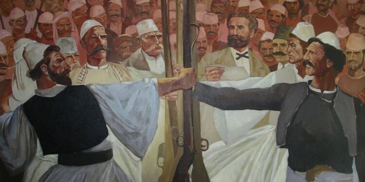 2. Qëllimi ynë i lart është të mbrojmë të drejtën e lartmadhërisë së tij sulltanit, sovranit tonë. Në do quajmë armiq të kombit dhe atdheut të gjithë ata që kundërshtojnë dhe prishin qetësinë, ata që dobësojnë qeverinë dhe bashkëpunëtorët e tyre. Në rast se turbulluesit nuk heqin dorë do i dëbojmë jashtë shtetit.