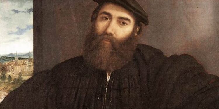 Po përse historiani i artit Humphrey e ka datuar këtë tablo në vitin 1535, ndërkohë që mendimi i mëparshëm unanim kishte qenë se Lotto e kishte punuar në vitin 1530? Mjafton të bëjmë një përafrim me tablonë tjetër të Lottos, “Portreti i argjendarit, i parë në tri këndvështrime”, për të kuptuar se këto dy portrete janë pikturuar në të njëjtën kohë, me të njëjtat ngjyra dhe se janë tepër të ngjashëm. Mjekra e dy personazheve është e njëjtë, madje dhe hunda apo drita e portretit. Është e habitshme të arsyetosh se nuk përkon ky portret me pikturat e tjera të kësaj periudhe. Por ç’janë pesë vjet në krijimtarinë e një piktori? A ndryshon vallë shumë stili i tij brenda pesë vjetëve? Sigurisht që jo, veçanërisht për piktorët e Renesancës …
