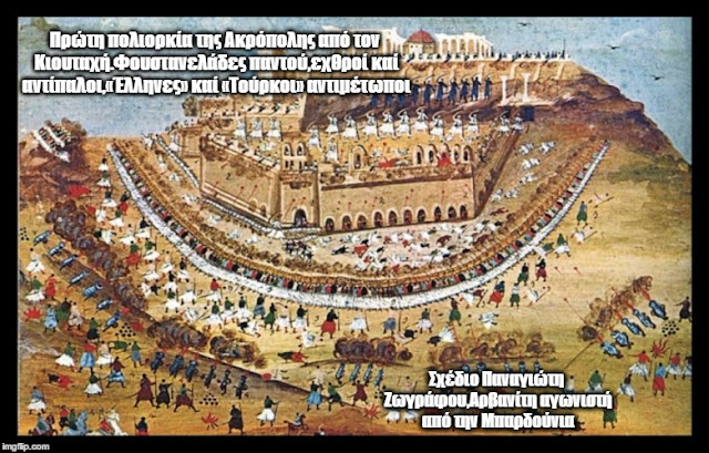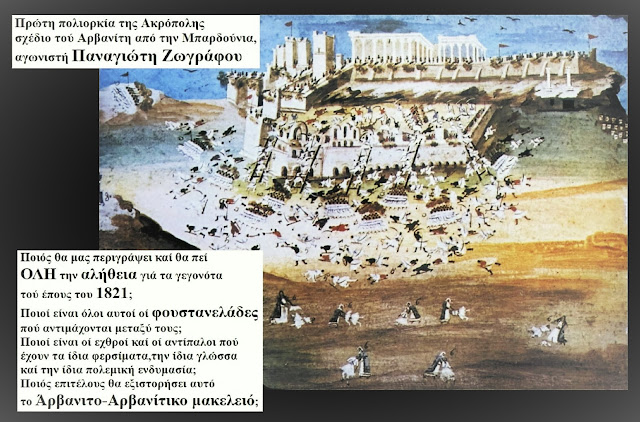 Nëse shohim pikturat e Panajoti Zografit (një luftëtar dhe artist i vetëmësuar i kohës), vërejmë një detaj që historiografia zyrtare shpesh e kalon në heshtje: të dyja palët ndërluftuese mbajnë të njëjtën veshje – fustanellën. Pyetja që shtrohet në dokumentet tona është therëse: Kush ishin këta “Grekë” që luftonin “Arvanitinë”? Siç dëshmohet nga ditarët e kohës, si ai i Nikolla Kasomulit, dallimi mes palëve nuk ishte gjuha apo raca, por feja. Në rrethimin e Akropolit apo në betejat e Moresë, Arvanitët e krishterë (që sot njihen si grekë) u përplasën me Arvanitët muslimanë dhe Shqiptarët e dërguar nga Porta e Lartë. Ishte një “makelej” (masakër) arvanito-arvanitase, ku vëllai nuk njihte vëllanë për shkak të dogmave fetare dhe interesave politike të fuqive të mëdha.