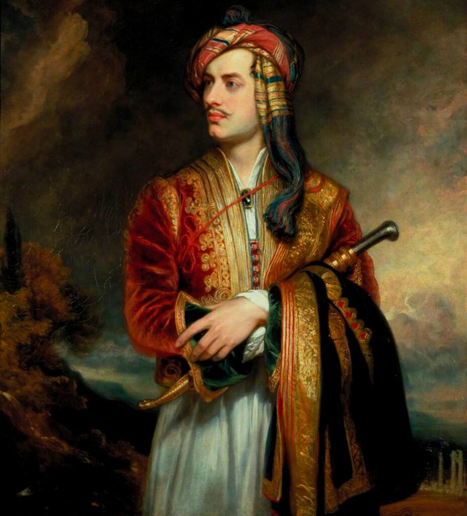 Ajo që e bëri të pavdekshëm lidhjen e tij me Shqipërinë është piktura (e publikuar) dhe veshja e atij solemniteti ngjyrash dhe elegance që shokon edhe sot ëndjet e adhuruesve të së bukurës. Gjatë vizitës së tij në Shqipërinë e Jugut, në Janinë në vitin 1808, Lord Bajron mori si kujtim nga ato vise një kostum tradicional shqiptar. Do të ishte pikërisht bukuria dhe veçantia e këtij kostumi, që në verën e vitit 1813 do frymëzonte piktorin Tomas Filips që të realizonte portretin e famshëm të Lord Bajronit veshur me kostumin shqiptar. Piktura titullohet “Portrait of a Nobleman in the dress of an Albanian” (portret i një fisniku me veshje shqiptare) dhe paraqet Bajronin me një veshje ku ndërthuren e purpurta dhe e arta e jelekut me vizat gri e blu të një një turbani që i përngjan më shumë një shalli; e bardha e këmishës dhe e fustanellës me të zezën e kadifenjtë të një xhakete. Ai mban në duar një jatagan, i cili ka një këllëf të purpurt e të argjendtë. Portreti u vendos asokohe në Royal Academy dhe tani është i vendosur në ambasadën britanike në Athinë, sipas Wikipedia.